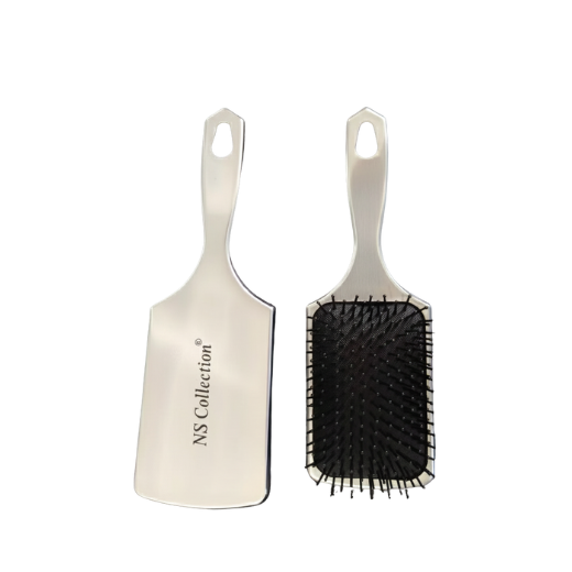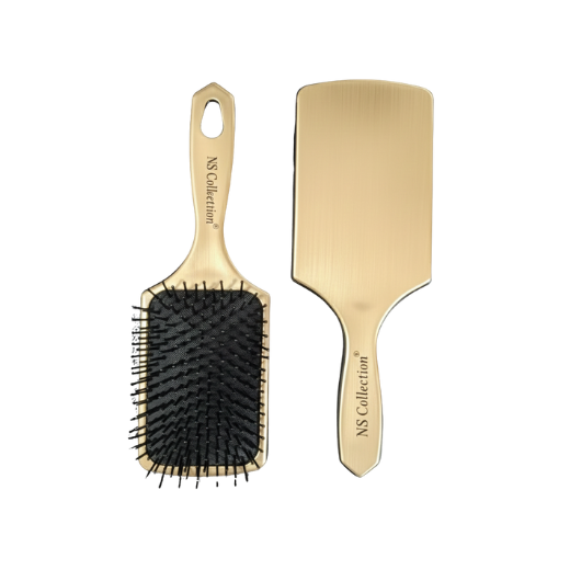 • The NS Collection Paddle Brushes come in metallic silver and gold finishes.