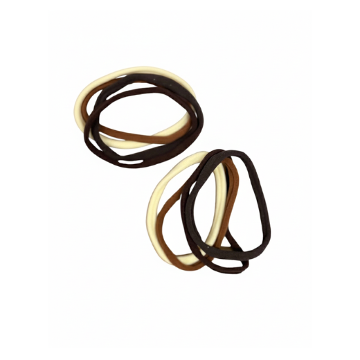 A versatile set of soft, seamless hair elastics in a sophisticated neutral palette, designed for a secure hold without damaging or snagging the hair. Each box contains 12 sets