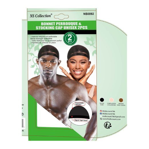 NS Collection Unisex Stocking Cap (2-pack) A comfortable, breathable, and highly elastic stocking cap designed to hold hair securely in place under wigs or for daily maintenance. Features a high-tension band for a perfect fit.