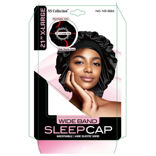 NS Collection Wide Band Sleep Cap (X-Large) A premium, breathable satin sleep bonnet featuring a 21-inch extra-large capacity and a comfortable wide elastic band. Designed to protect hair, reduce friction, and stay securely in place throughout the night.